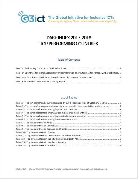 This report, based on the 2017-2018 DARE Index data collection and analysis, highlights the top 10 countries implementing the ICT accessibility dispositions of the CRPD.