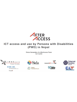 The Presentation by After Access looks at the results of the survey to understand access and use of ICTs in Nepal among age 15-65 population and age 15-65 PWD population.